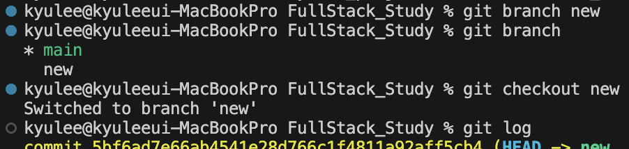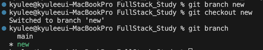 git branch-> 브랜치 목록 확인git branch 새로운 브랜치 이름-> 새로운 브랜치 생성