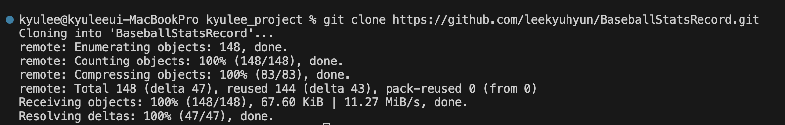 git clone <원격 저장소 url : 2번에서 복사한 링크 입력>