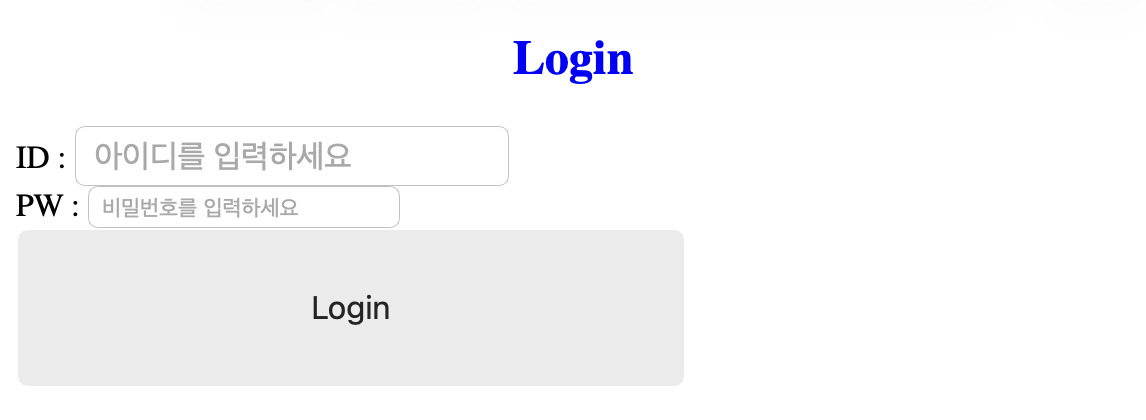 PW : <input type="password" placeholder="비밀번호를 입력하세요"> <br>