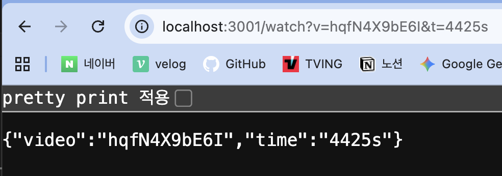 비구조화 할당 (const { v, t } = req.query)