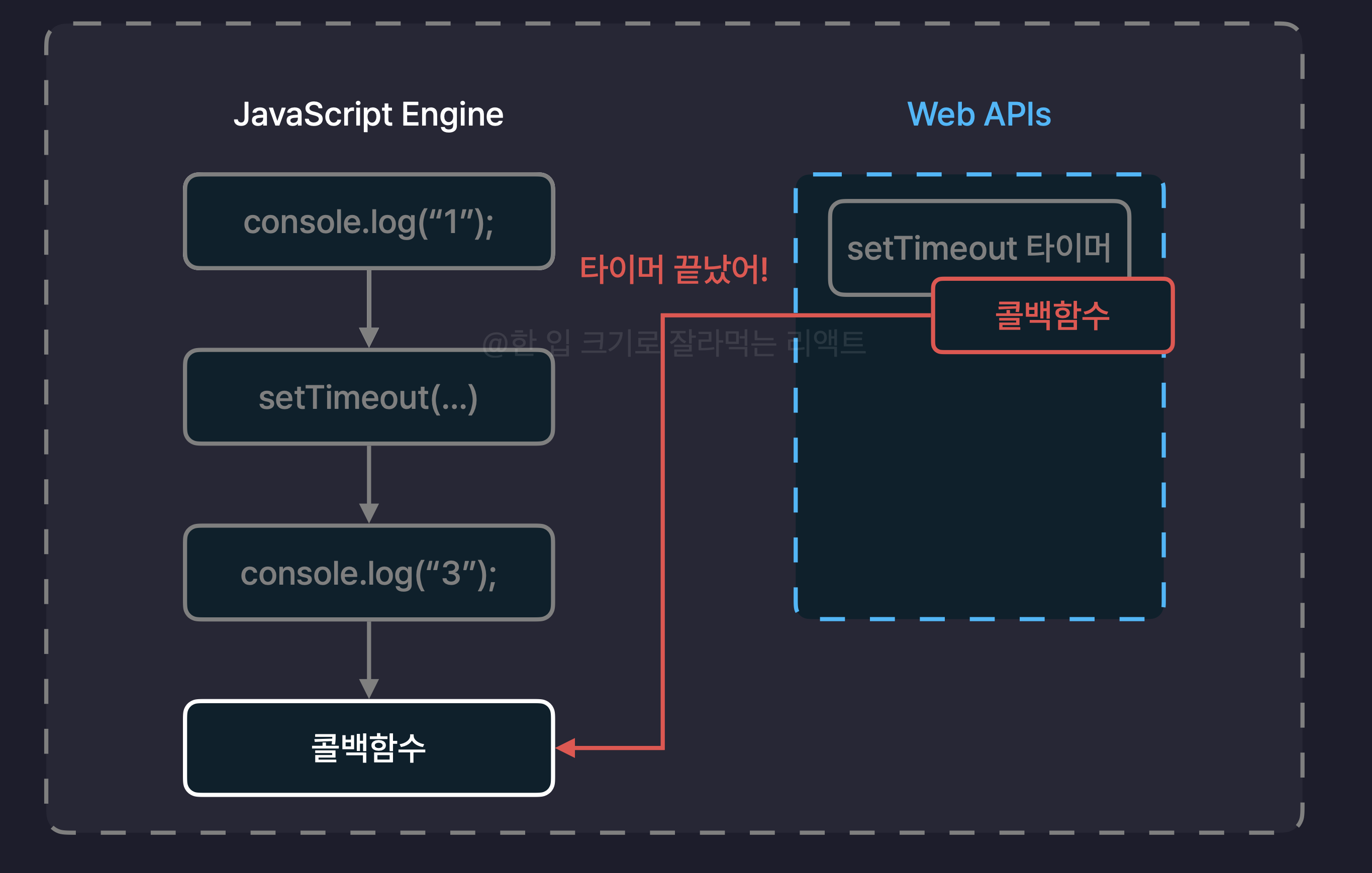 - 콜백 함수의 역할 비동기 작업이 언제 끝날지 모르는 상황에서, "작업이 끝나면 이 함수를 실행해 줘"라고 부탁하는 것과 같다.