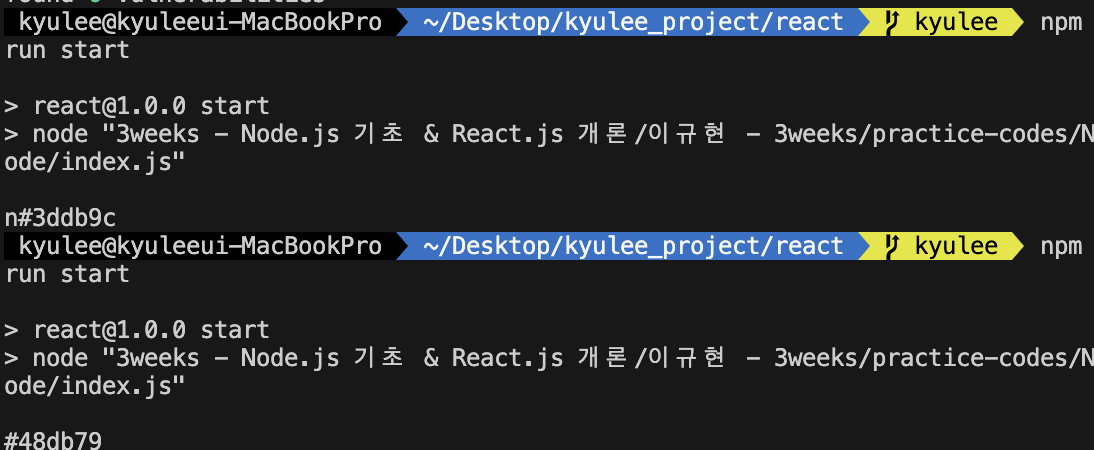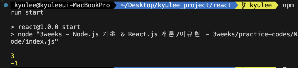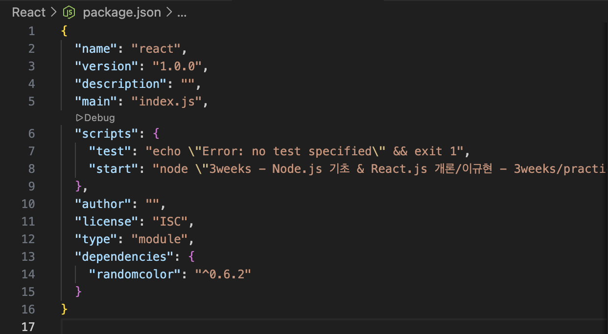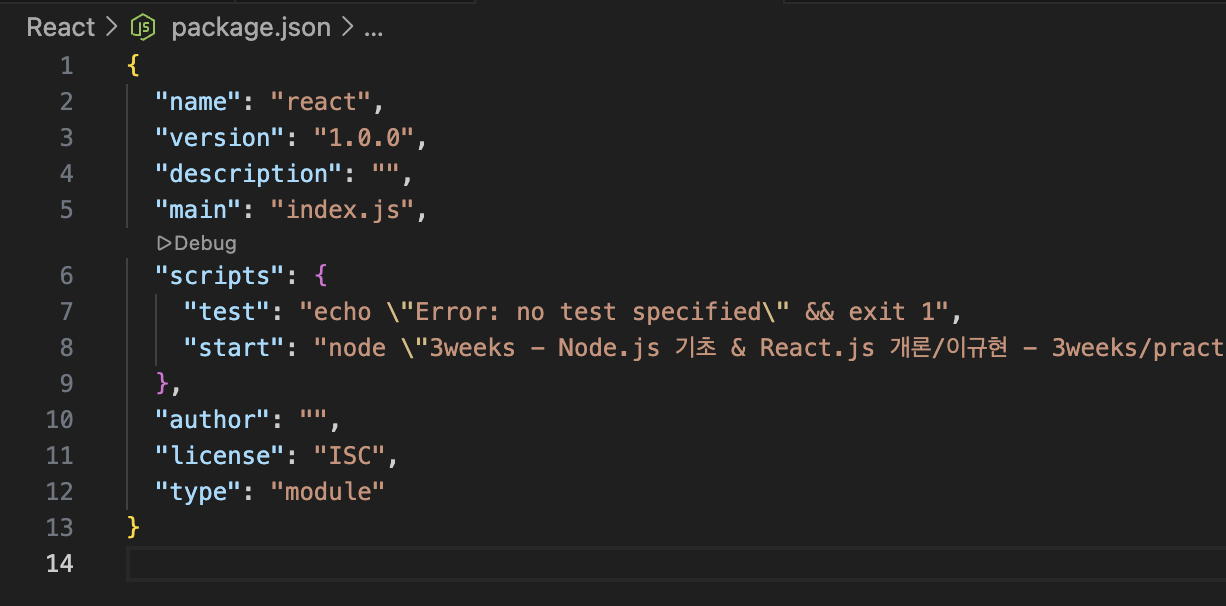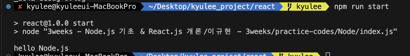 "start":"node (index.js가 위치한 경로)를 추가해주면 다음과 같은 명령어로 간단하게 index.js가 실행됩니다.