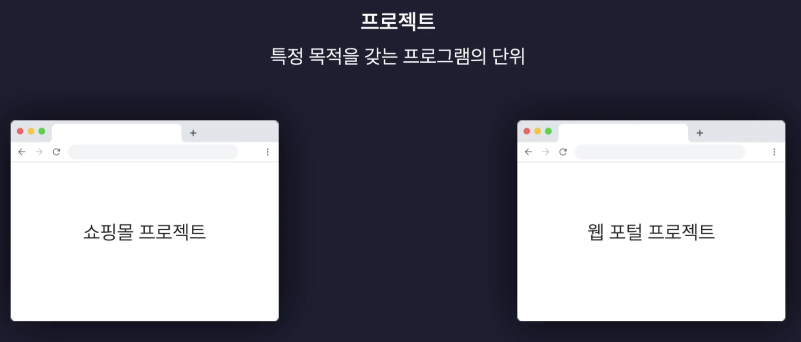 프로젝트: 특정 목적을 갖는 프로그램의 단위이다.