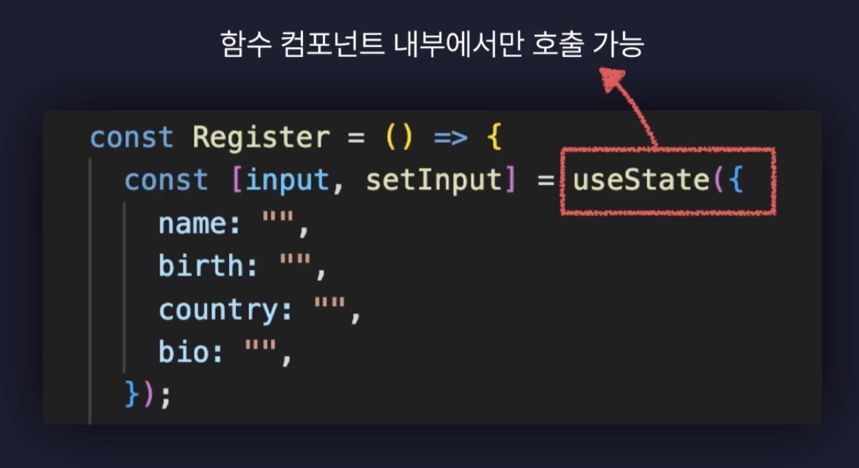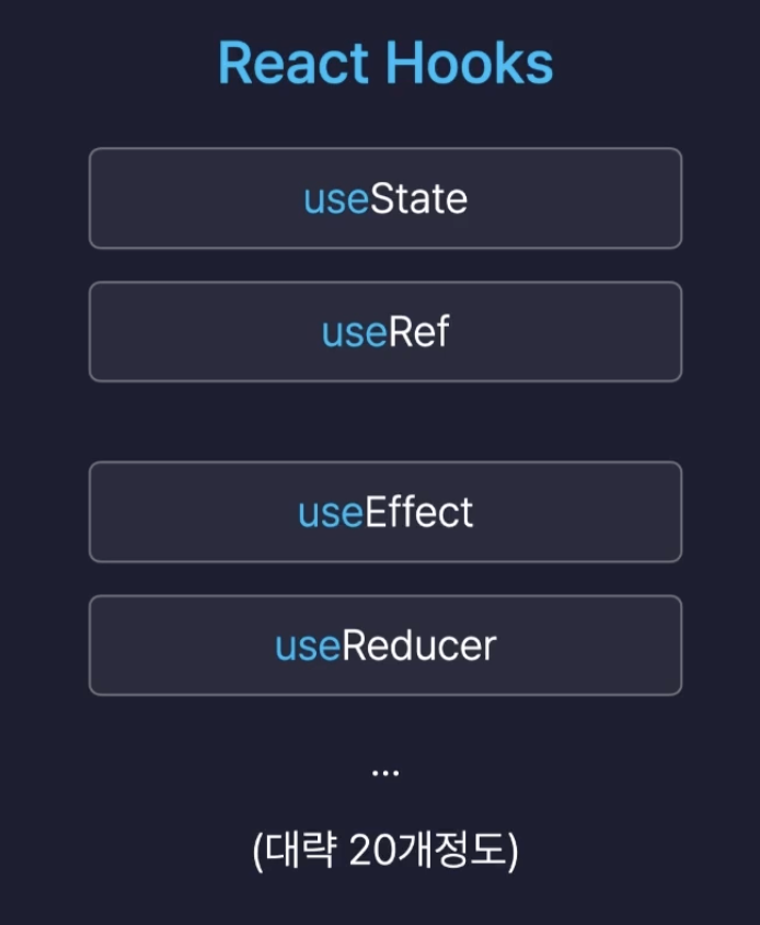 앞에서 배운 useState와 useRef는 모두 React Hooks이다. 이름 앞에 동일한 접두사 use가 붙고, 각각에 메서드는 Hook이라고 부른다.