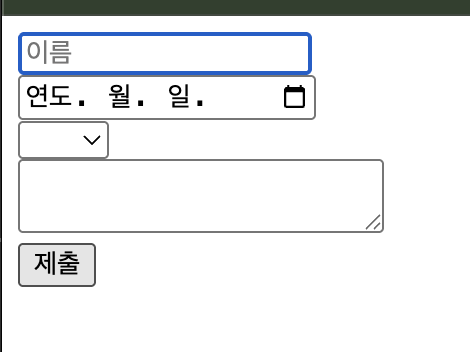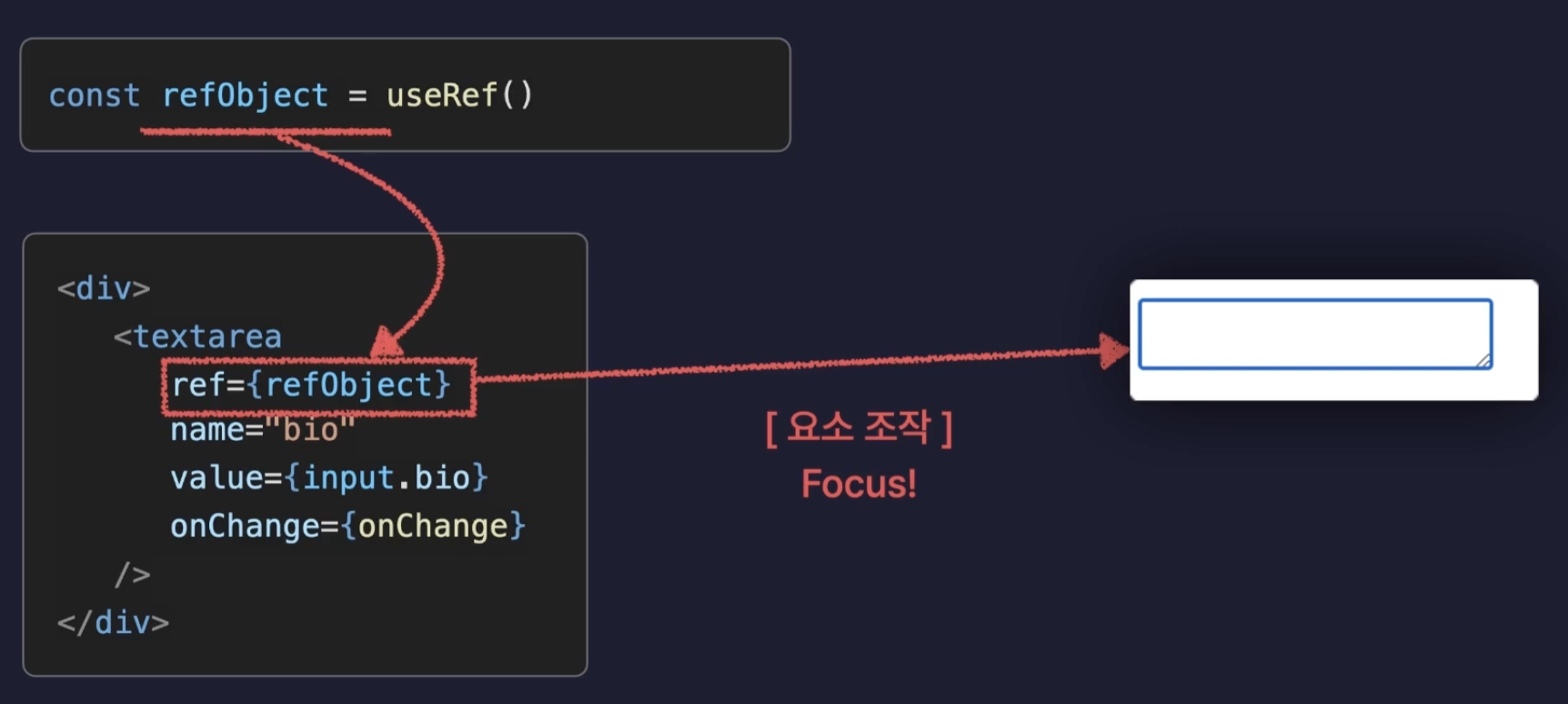 inputRef는 <input ref={inputRef} />로 실제 DOM input 요소와 연결된다. 이후 inputRef.current.focus()로 해당 input에 포커스를 직접 줄 수 있다. 이름 미입력 상태로 제출 버튼을 클릭하면 이름 입력창으로 포커스가 이동한다.