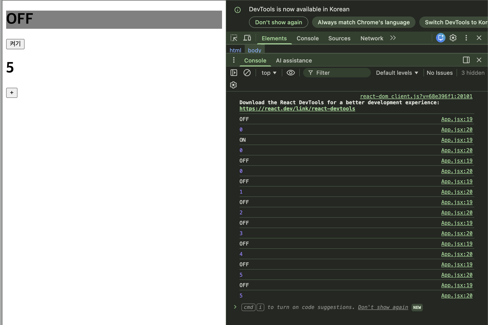 입력 처리 로직을 useInput이라는 커스텀 Hook으로 분리했다. 내부에서 useState를 사용하고 [현재값, 핸들러] 배열을 반환한다. use로 시작하는 함수 안에서 다른 Hook을 호출하는 것이 커스텀 Hook의 핵심 규칙이다.
