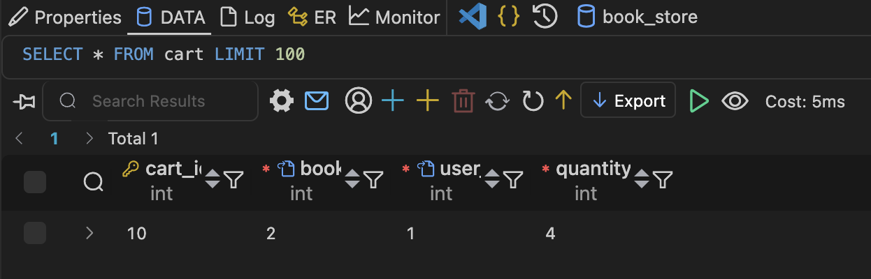 - SELECT 절: book_id, title, author, price, quantity 정보 조회