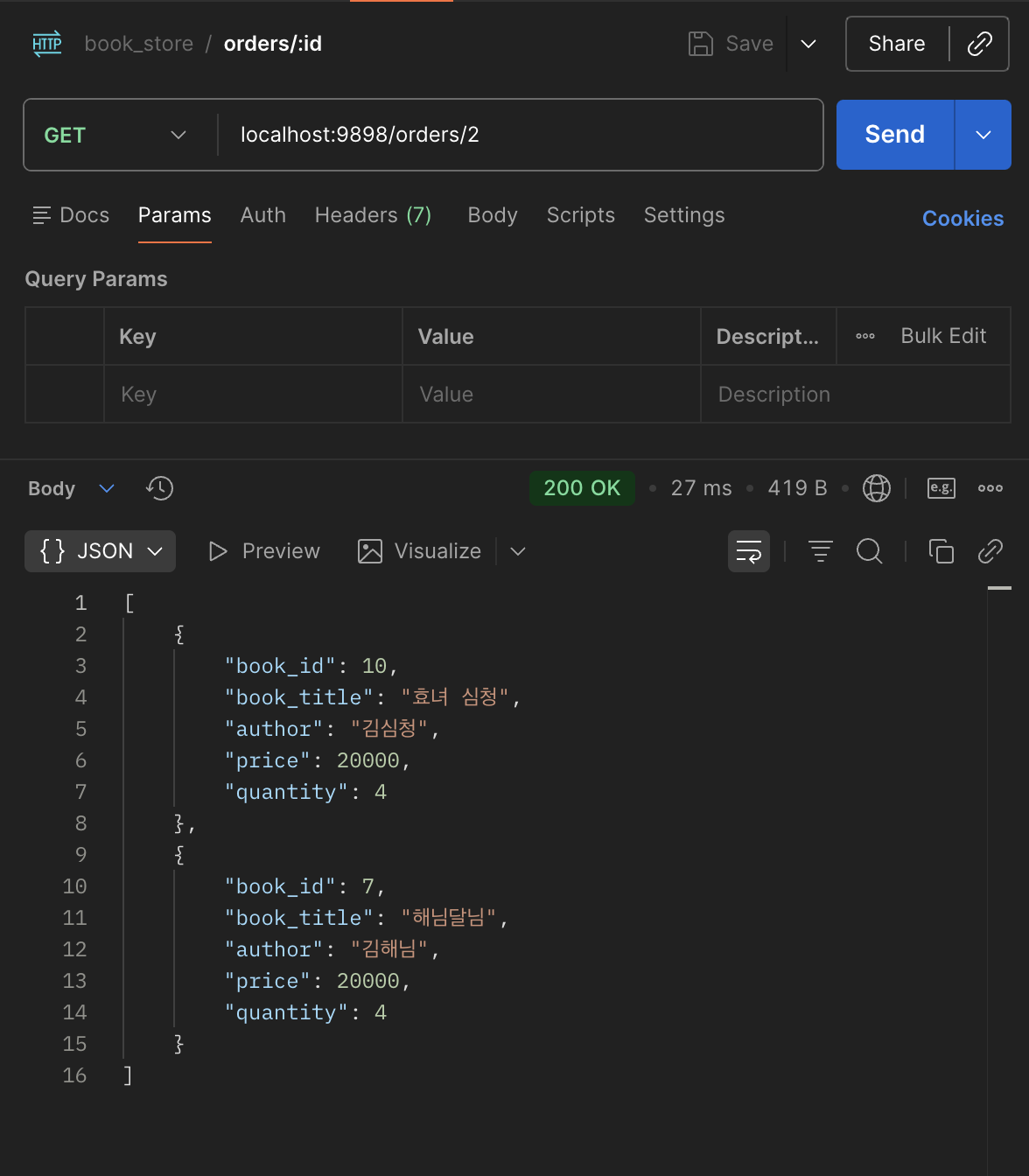 - 200 OK 상태 코드로 모든 주문 정보를 배열 형태로 반환