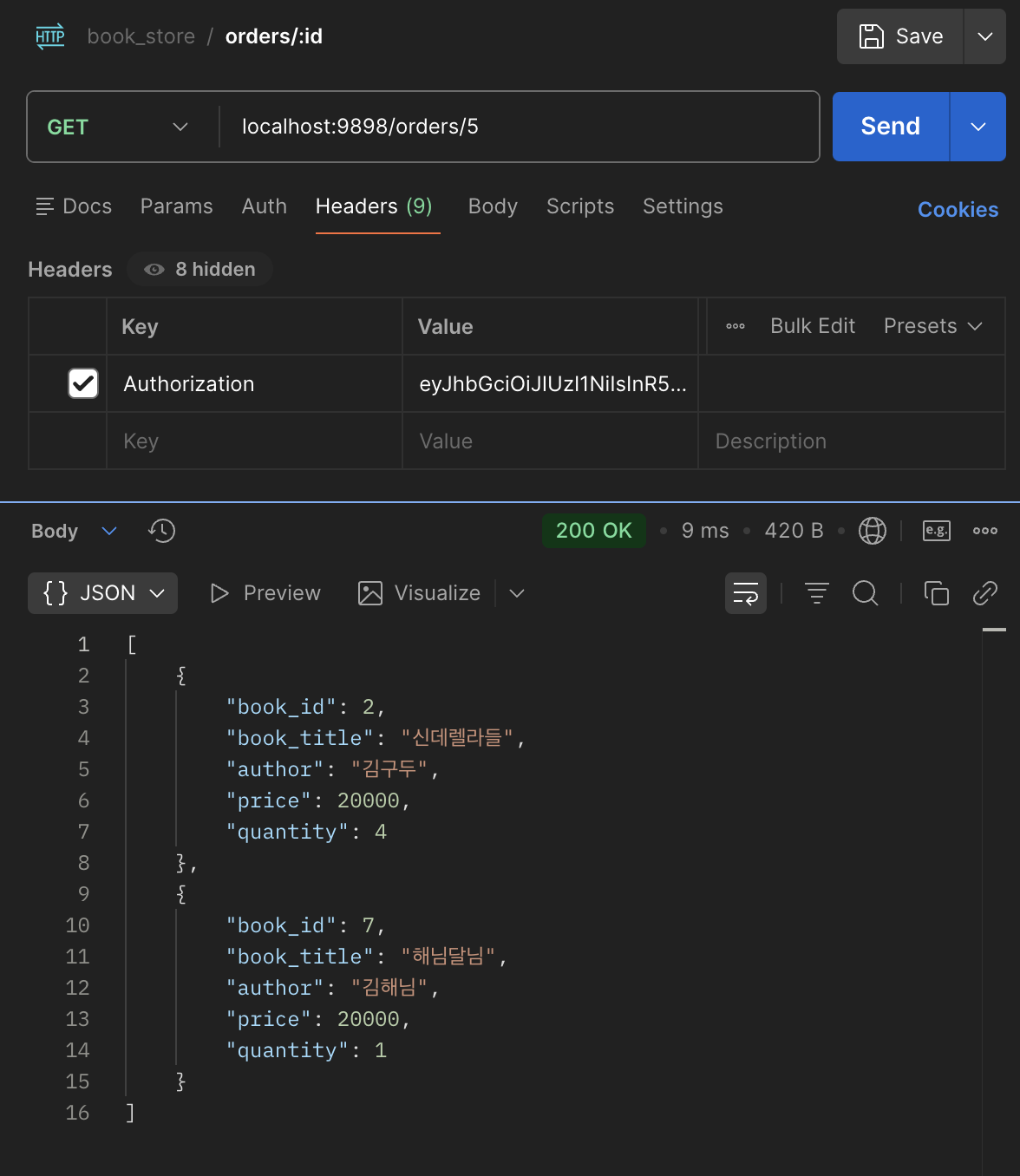values = [firstBookTitle, totalQuantity, totalPrice, auth.id, delivery_id];