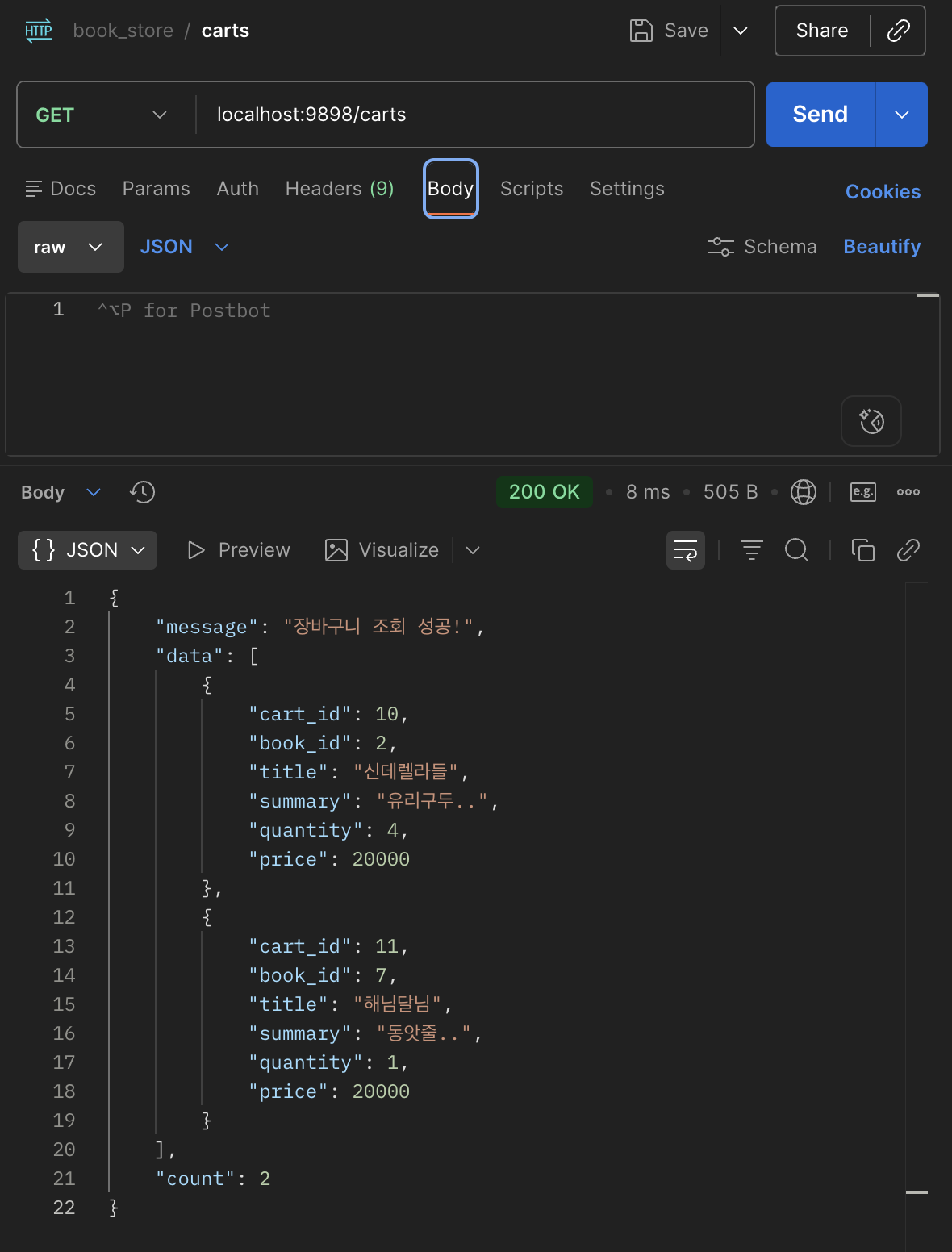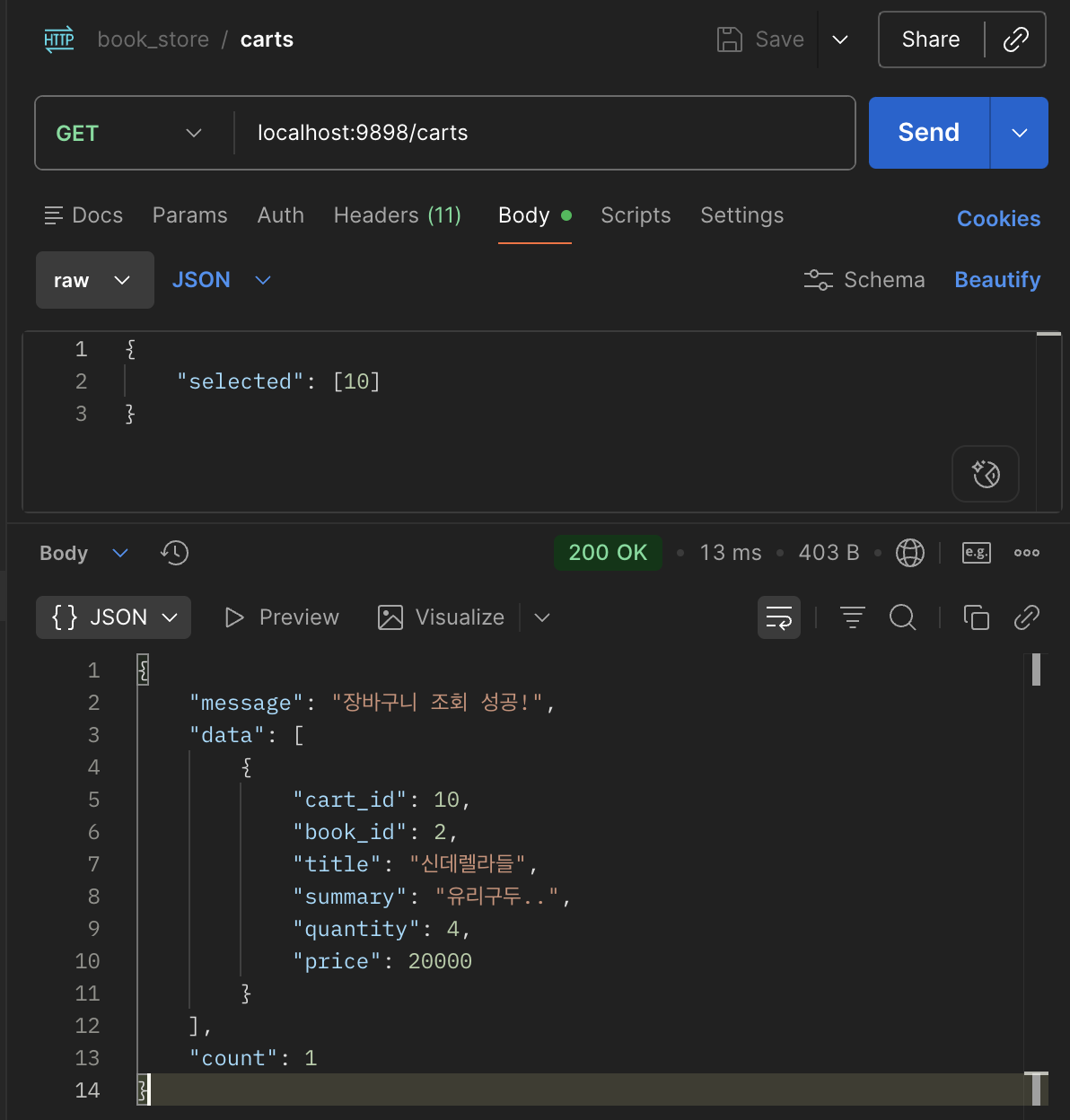 message: '장바구니 조회 성공!',