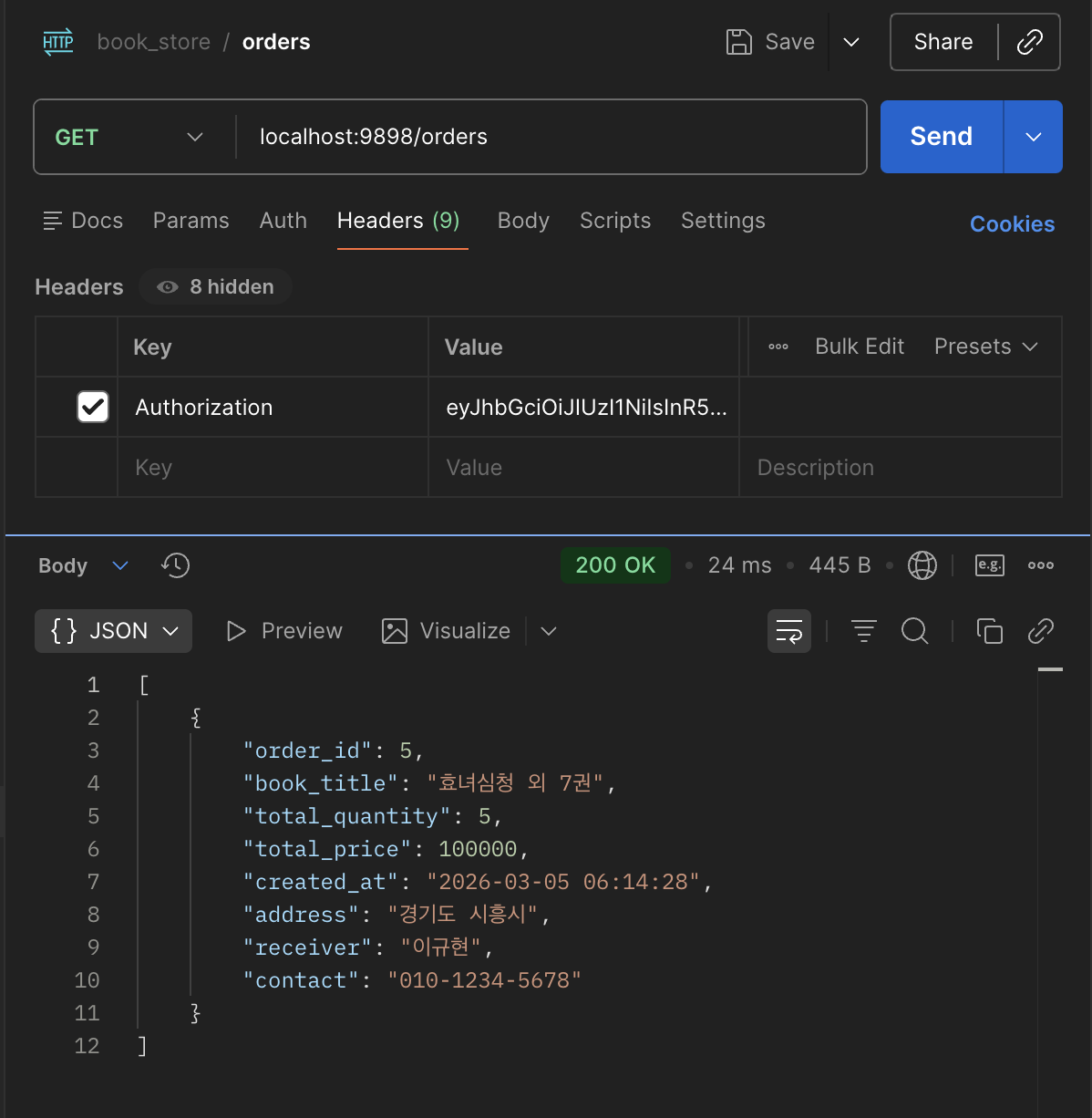 getOrder (주문 내역 조회)