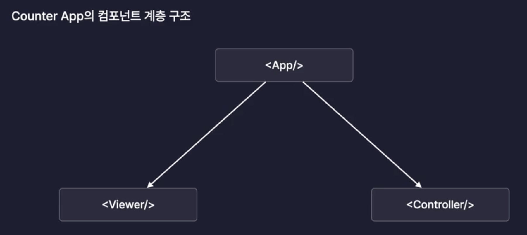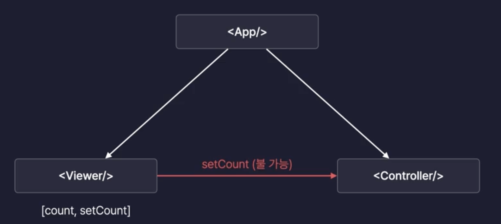 현재 구조는 App이 부모이고, Viewer와 Controller가 형제 컴포넌트다.